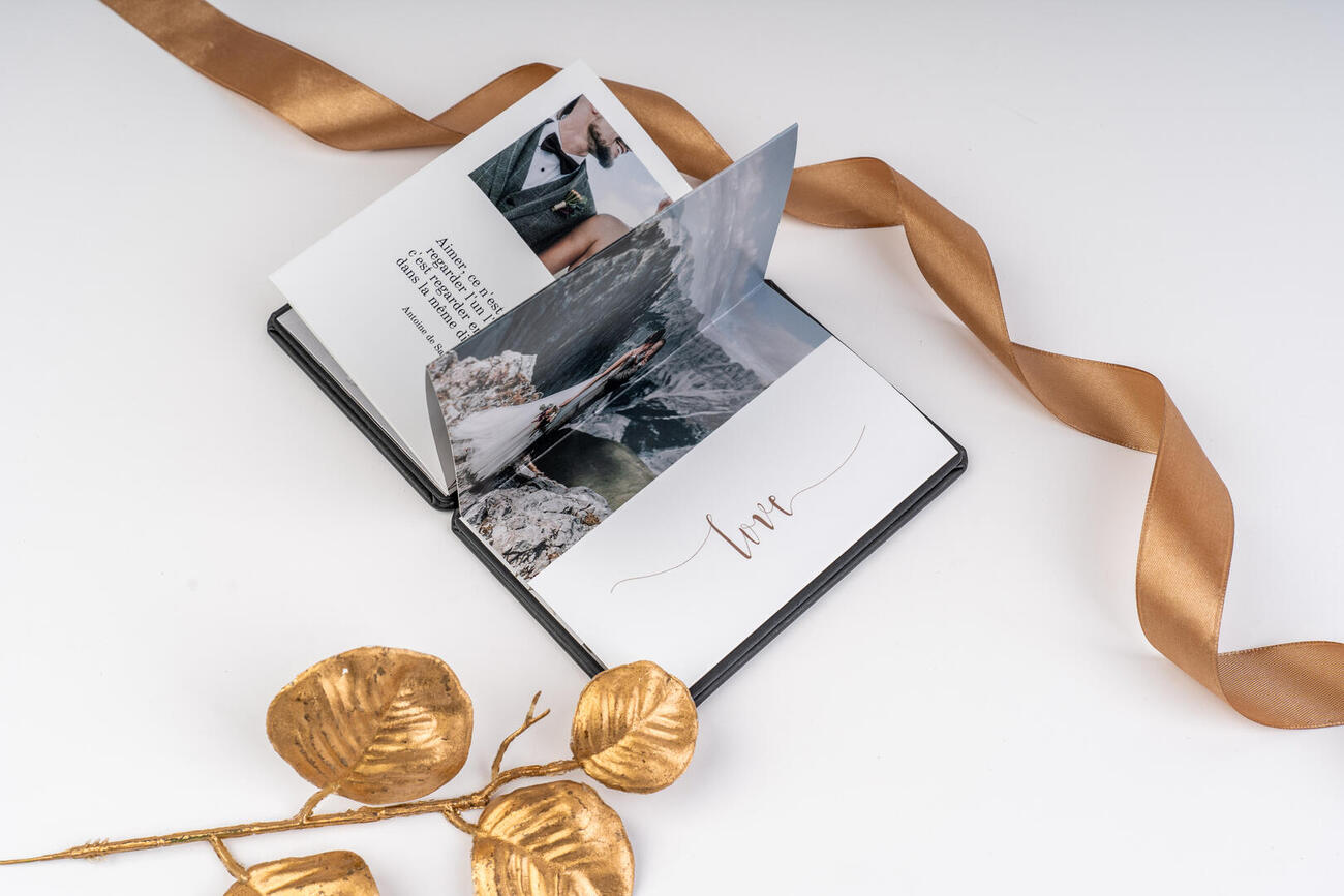 Deine Kunden bekommen etwas, das sie leicht weiter verschenken können. Ein Produkt im handlichen Miniformat, das viel Platz für Fotos bietet, ohne dabei an Qualität einzubüßen. Dir stehen drei Formate zur Verfügung. Zwei Quadratische und eines im Hchformat: 8x8 cm, 12x12 cm und 10x14 cm. Gedruckt wird entweder auf Felix Schoeller Luster 290 g m2, oder dem Fine Art Mohawk Eggshell 216 g/m2 Papier. Ein Mini-Leporello im 8x8 cm Format kann 12-18 Seiten fassen, im 12x12 cm Format 6-10 Seiten und im Format 10x14 cm 6-14 Seiten.