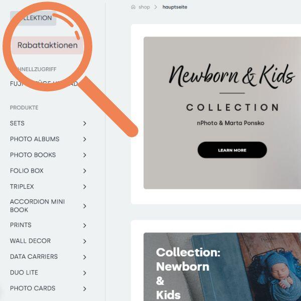 Die Aktionsprodukte findest du im Shop unter „Rabattaktionen“ im Bereich „Festival der Musterprodukte 2026“. Wähle eine Produktkategorie aus und gestalte die ausgewählten Fotoprodukte entweder komplett neu oder nutze eine fertige Inspiration, die du anpassen oder direkt in den Warenkorb legen kannst.