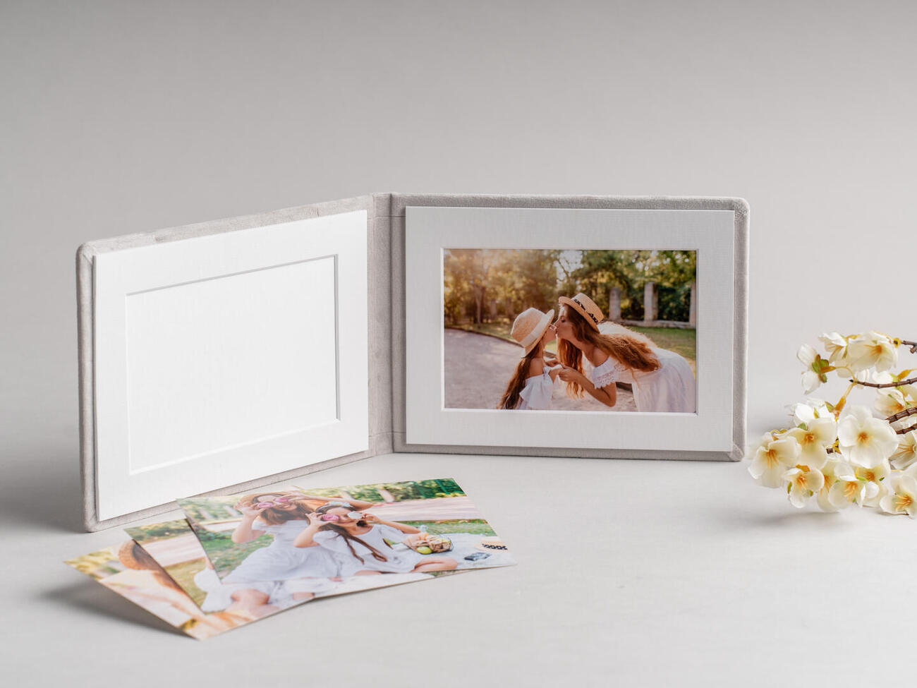 Die Produkte sind für gängige Abzugsformate erhältlich und für den mehrfachen Bildwechsel konzipiert – ohne Qualitätsverlust und ohne sichtbare Abnutzung. So bleibt die edle Optik dauerhaft erhalten. Fotoprodukte mit Fotoeinschub sind perfekt geeignet für die Porträtfotografie, Baby- und Familienfotografie – überall dort, wo Ästhetik und Flexibilität gefragt sind.