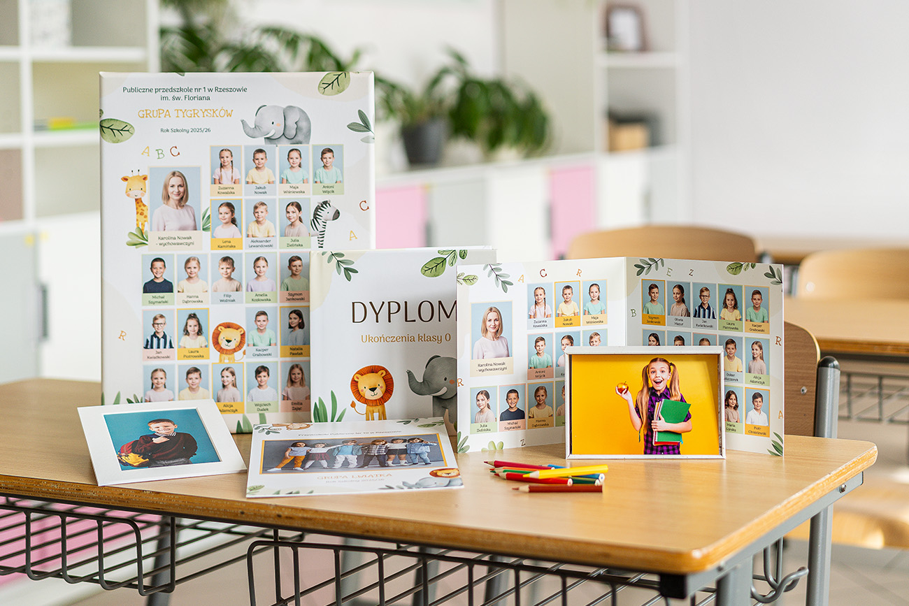 In der Kita- und Schulkollektion sind auch Abzüge erhältlich. Für die Formate, die im Bereich der Schulfotografie am beliebtesten sind, haben wir spezielle, fertige Vorlagen vorbereitet – abgestimmt auf andere Elemente der Kollektion. Diese Vorlagen kannst du im Kundenbereich herunterladen und mit ihrer Hilfe gewöhnliche Abzüge in attraktive Erinnerungsstücke verwandeln. Die Vorlagen sind für Fotos in den folgenden Formaten erhältlich: 15x23 cm, 15x21 cm, 20x30 cm, 10x15 cm, 13x18 cm.
