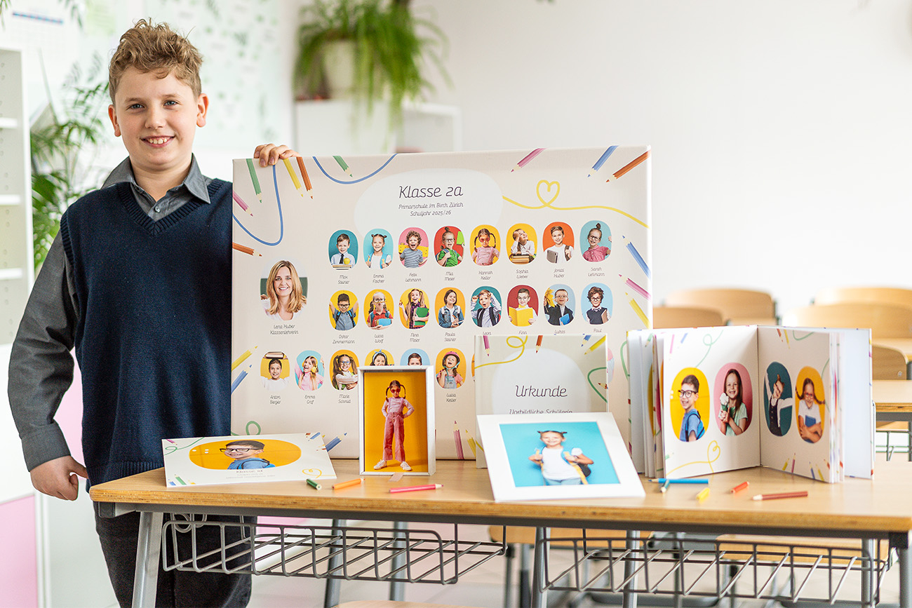 Die Kita- und Schulfoto-Kollektion wurde für die besonderen Anforderungen dieses Fotografiebereichs entwickelt und unterstützt dich dabei, Arbeitsprozesse zu vereinfachen sowie den Verkauf von Fotoprodukten gezielt auszubauen. Gebrauchsfertige Designs, durchdachte Formate und bewährte Fotoprodukte helfen, ein überzeugendes Angebot zu gestalten und flexibel auf die Erwartungen von Eltern einzugehen. Alle Produkte sind aufeinander abgestimmt und sorgen mit modernen Vorlagen, passenden Farbwelten und Personalisierungsoptionen für ein einheitliches Gesamtbild. So entsteht ein vielseitiges Angebot – von einzelnen Produkten bis hin zu stimmigen Produktpaketen für Schul- und Kindergarten-Shootings.