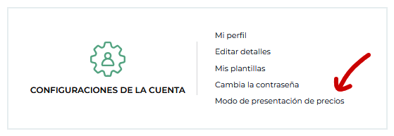 Conéctese y entre en el área de clientes; en el panel de configuración de la cuenta, seleccione el modo de presentación de precios: