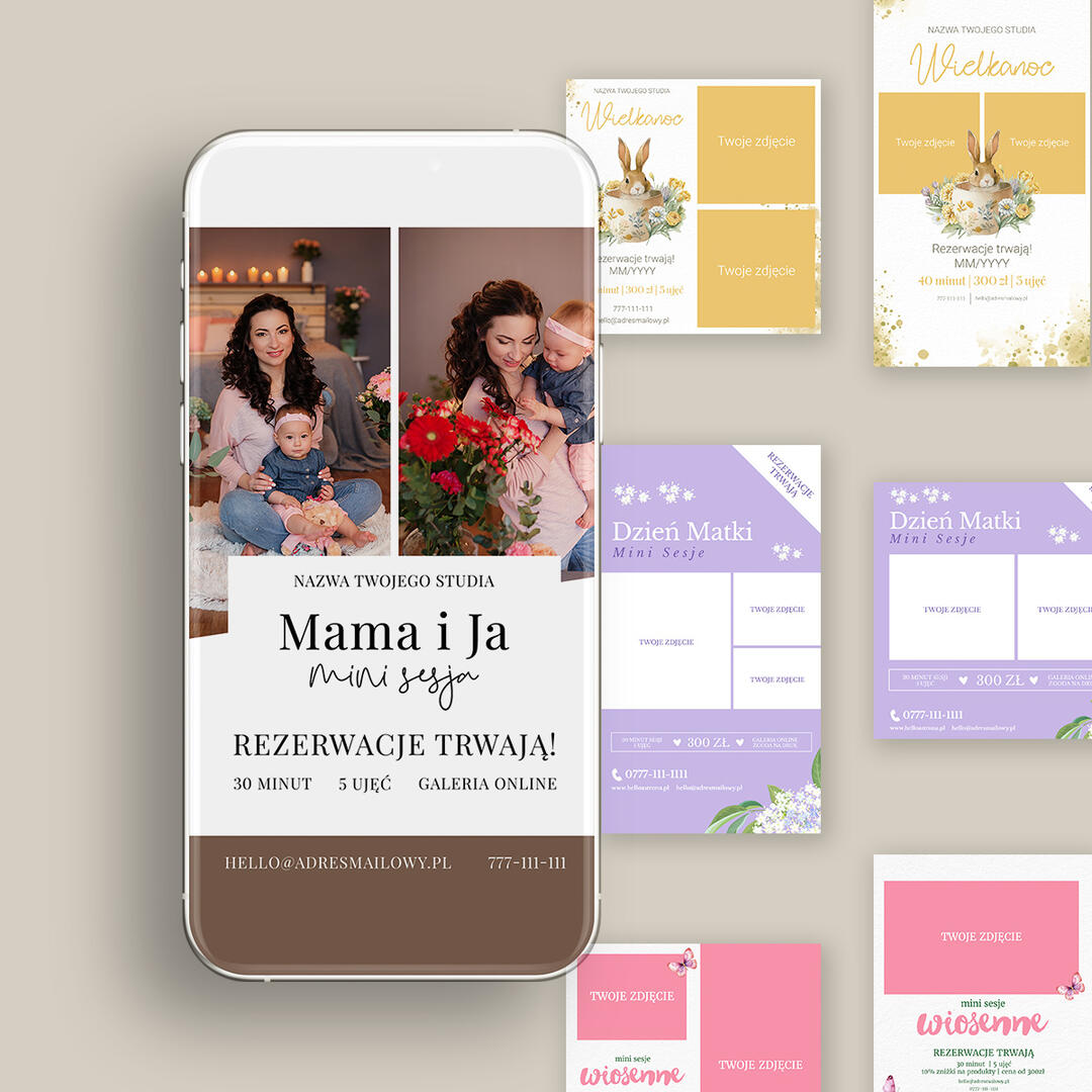 ♡ Makiety produktowe – umieść w nich zdjęcia swego autorstwa i pokaż Klientom jak Twoje zdjęcia wyglądają w naszym Fotoproduktach. Makiety otrzymasz w plikach PSD, więc z ich obsługą na pewno sobie poradzisz.