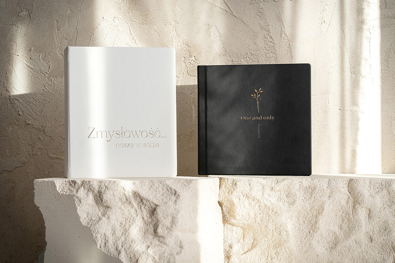 Album Box 25×25 cm to elegancka oprawa stworzona specjalnie dla Fotoalbumu 25×25 cm podkreślając jego wyjątkowy charakter. Klasyczna okładka z ekoskóry, dostępna w bieli, beżu i czerni, gwarantuje spójny, luksusowy wygląd całego zestawu. Dodatkowo możesz spersonalizować box za pomocą nadruku UV lub złocenia, tworząc dopasowany komplet, który zachwyci Twoich klientów i podkreśli profesjonalizm Twojej marki.