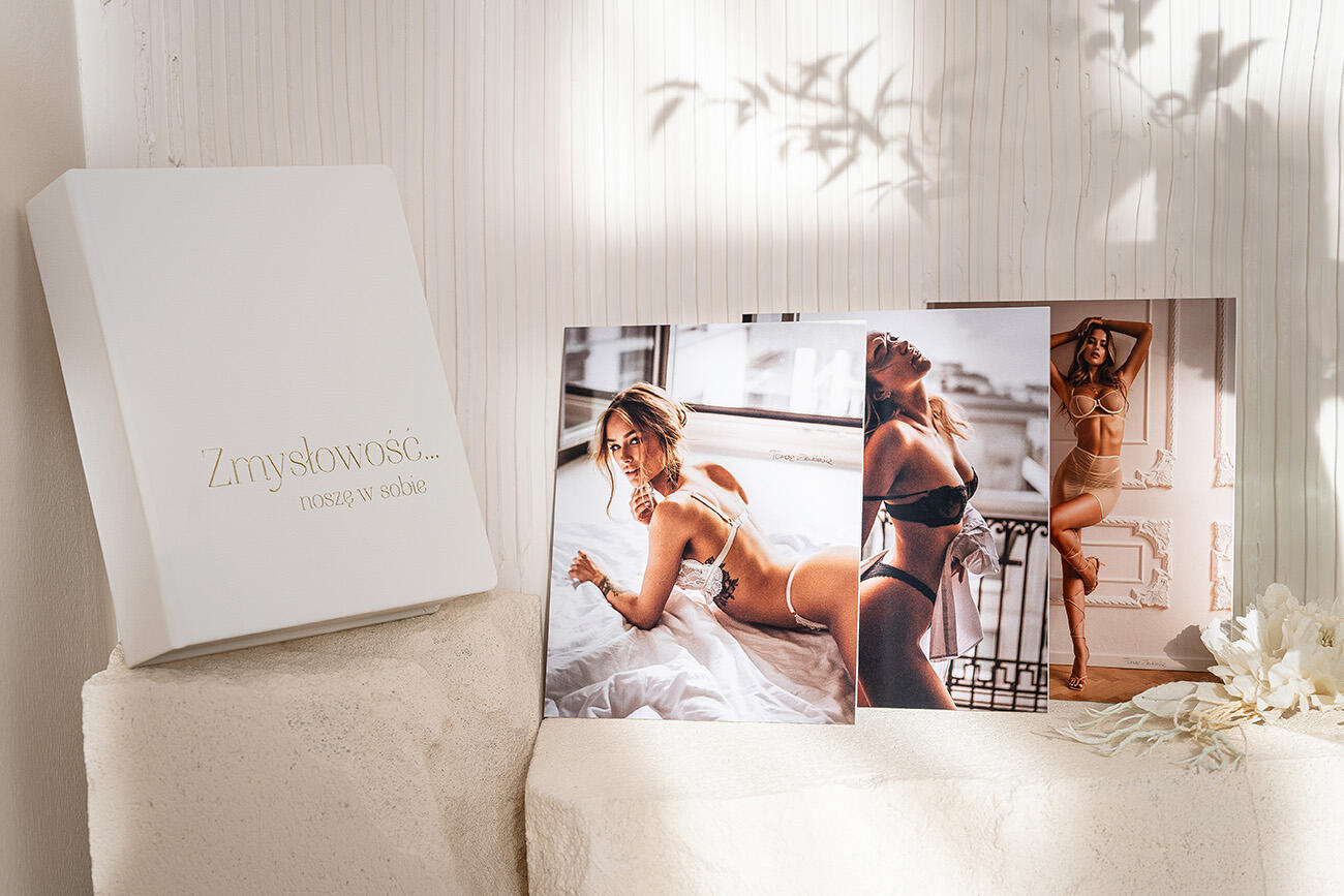 Kolekcja sensualna to starannie zaprojektowany zestaw fotoproduktów dla fotografów pracujących z fotografią buduarową i portretową. Powstała z myślą o uproszczeniu pracy fotografa, skróceniu procesu wyboru produktów oraz stworzeniu spójnej i gotowej do sprzedaży oferty dla klientów sesji sensualnych.