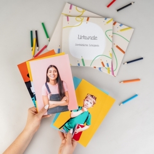 Dostępna w formatach: 20x25 cm, 25x20 cm, 15x21 cm, 21x15 cm, 20x30 cm, 30x20 cm. Karty są dwustronne, sztywne, drukowane na papierze Fuji Silk - odpornym na odciski palców i zarysowania, dzięki czemu karty są wytrzymałe. W połączeniu ze szkolnymi motywami możesz zaprojektować dyplom, pamiątkę ukończenia szkoły, podziękowania ze zdjęciem lub cytatem.