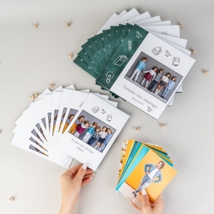 Duży nacisk położyliśmy również na design i jakość wykonania. Produkty w kolekcji wyróżniają się nowoczesnym wyglądem, zgodnym z aktualnymi trendami, a jednocześnie są trwałe i estetyczne. Gotowe szablony, opcje personalizacji oraz najlepiej dobrane formaty sprawiają, że projektowanie jest szybkie i intuicyjne.